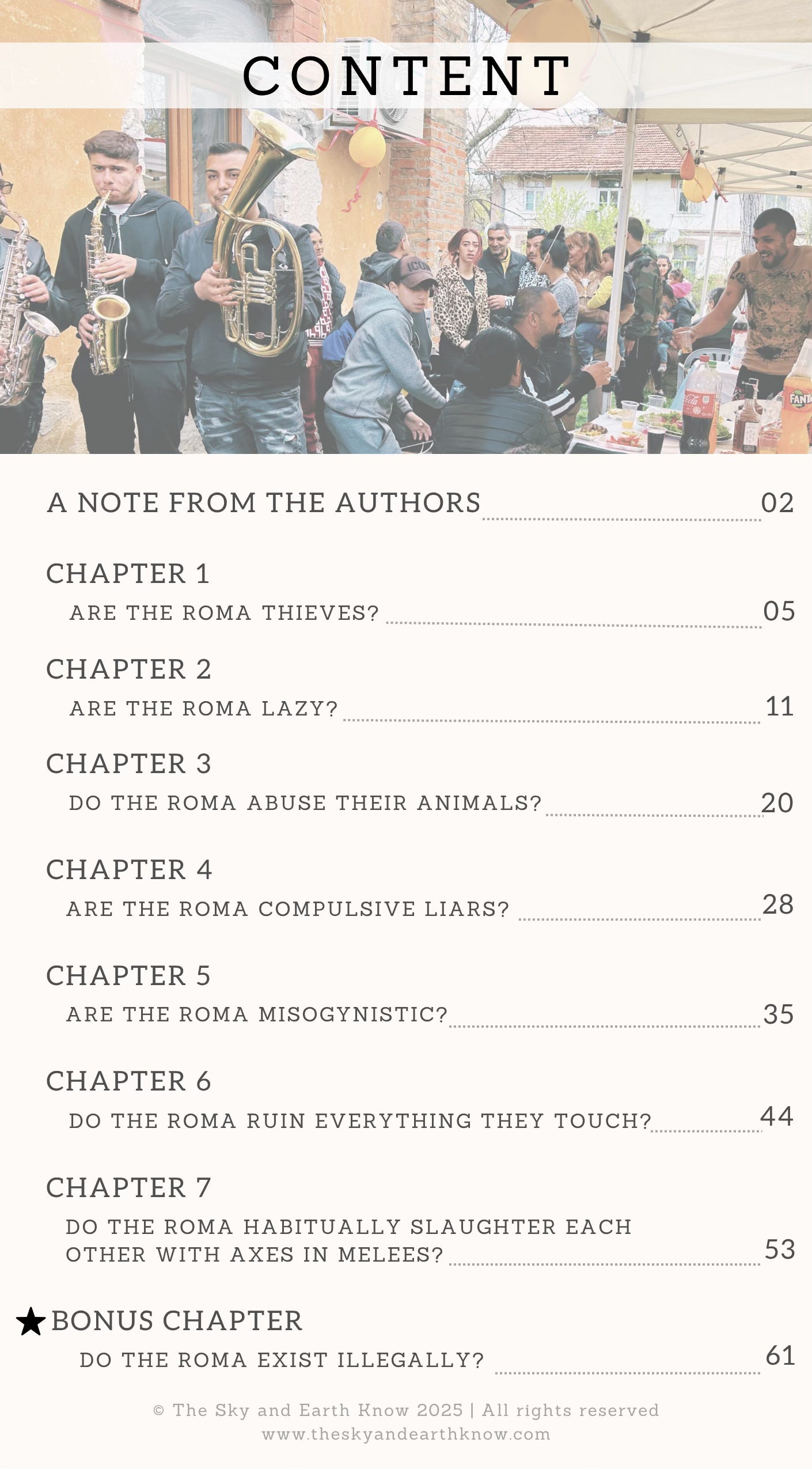 It is a bundle of our published articles discussing common anti-Roma stereotypes, including a bonus chapter titled “Do the Roma exist illegally?”, and almost 20 photographs we have taken in our Romani tribe. This is an initial digital-only PDF release, but we are working on launching the book in EPUB and MOBI format, as well as in print.
